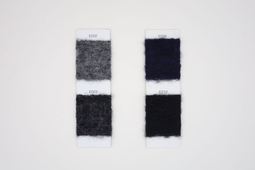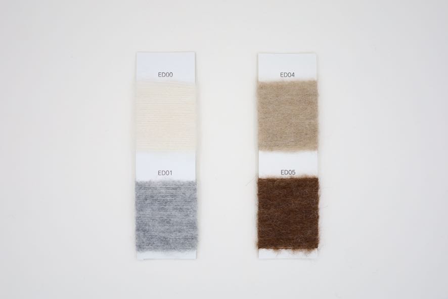 原料にペルーのベビーアルパカとウルグアイウール使用した紡績ループ。